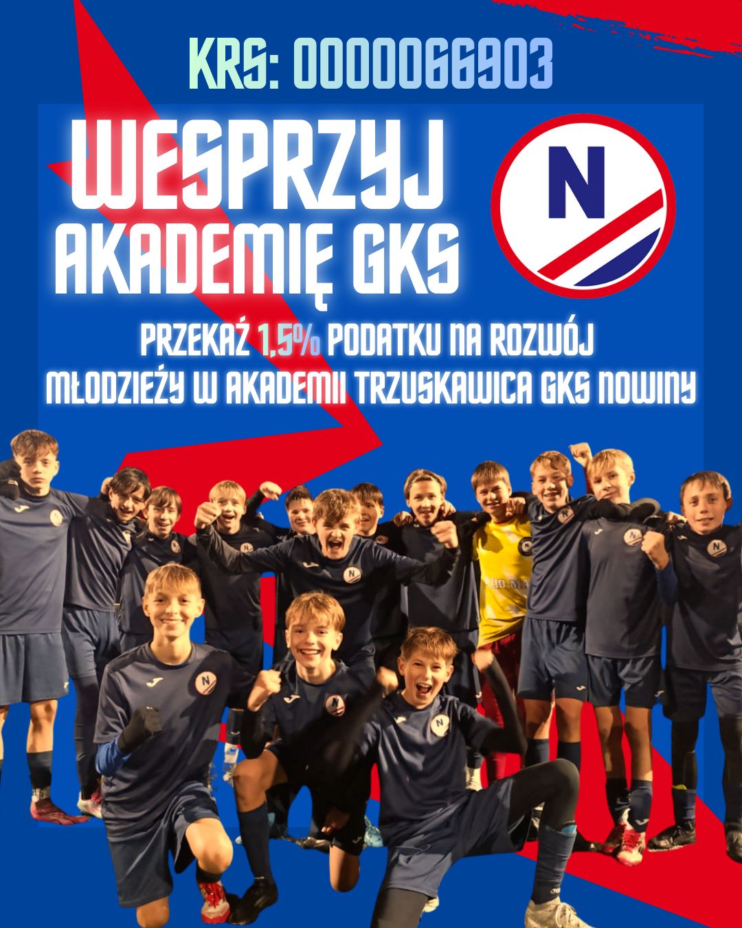 Wesprzyj Akademię GKS Nowiny przekaż 1,5% podatku na rozwój młodzieży w Akademii Trzuskawica GKS Nowiny
